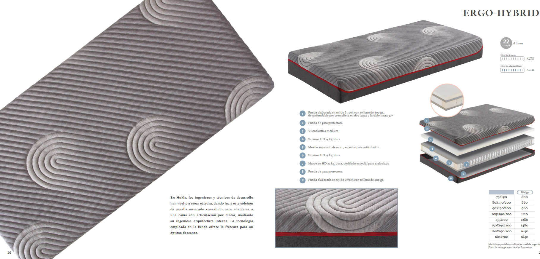 105×190, 105×200, 80×190, 80×200, 90×190, 90×200